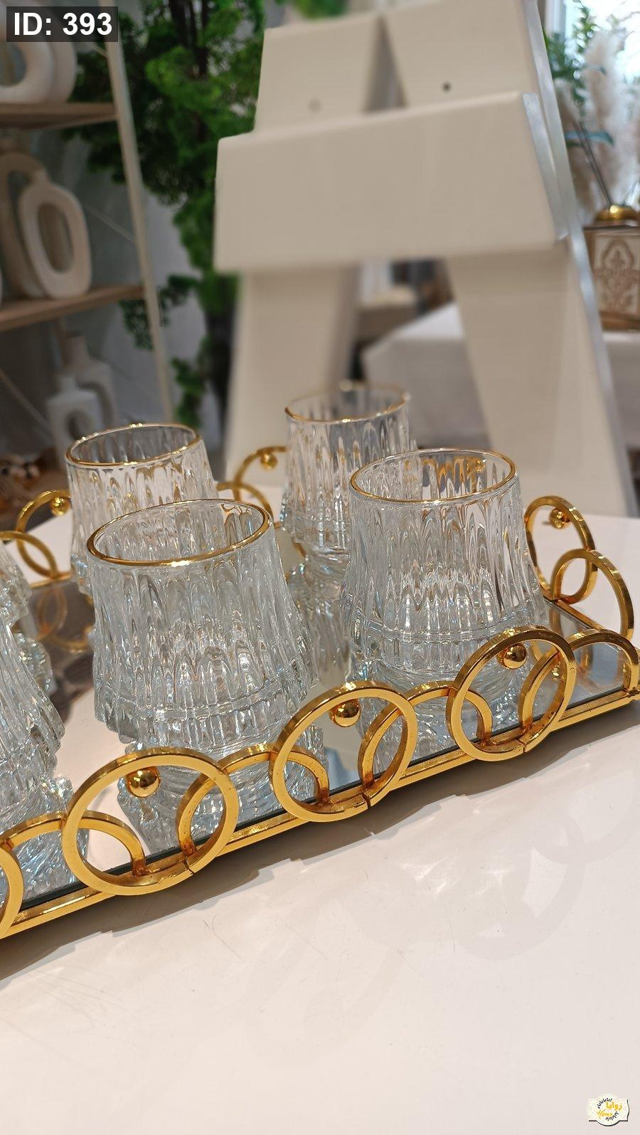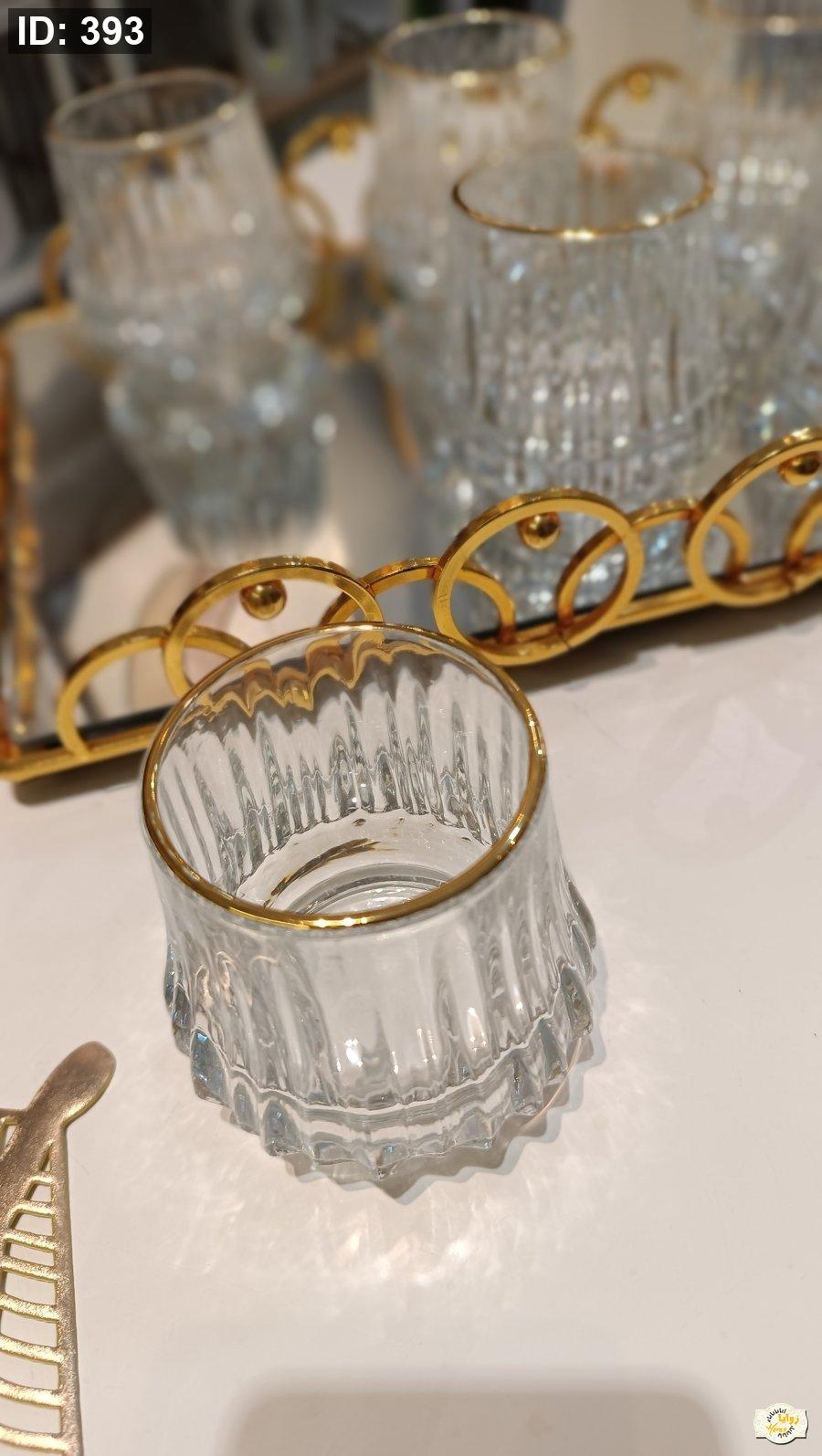 طقم كاسات عصير حز ذهبي 6 كاسات بالطقم