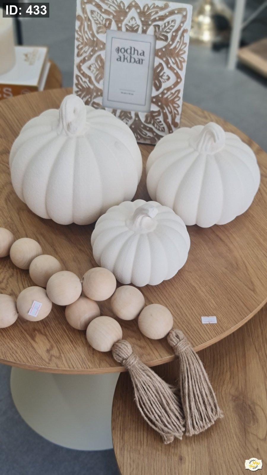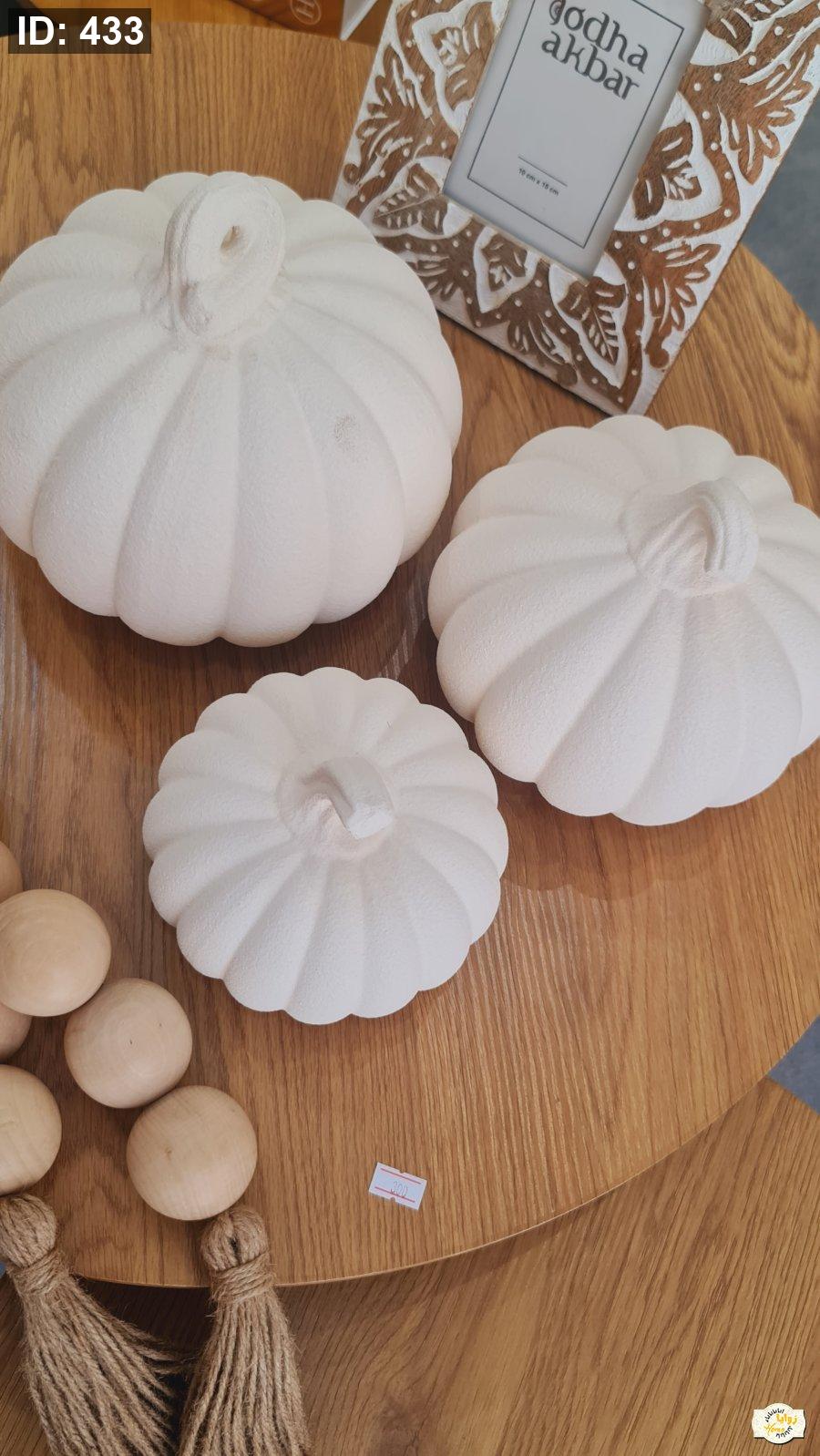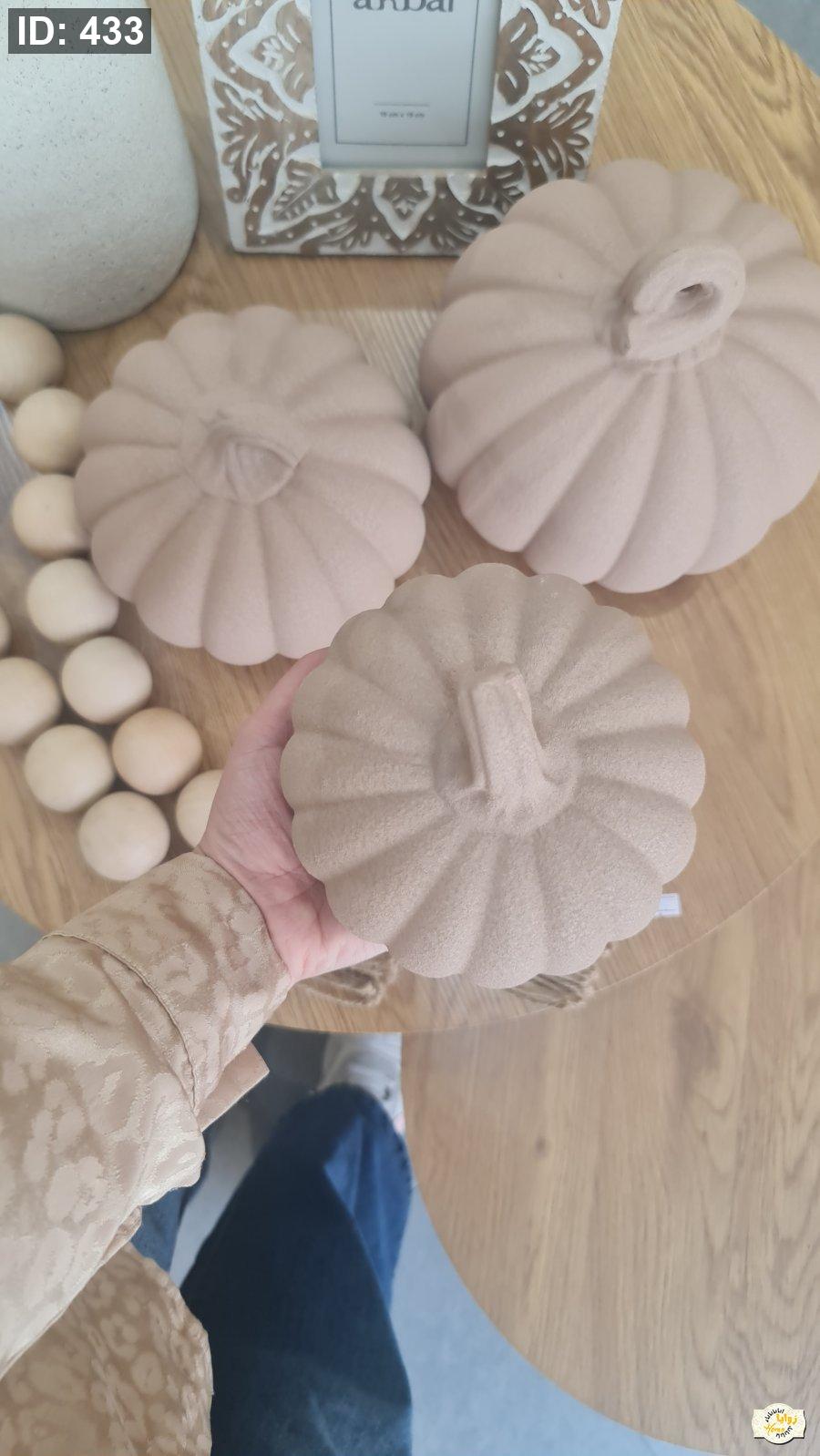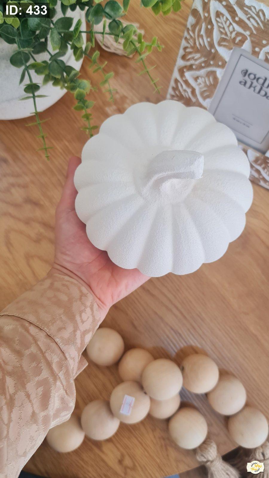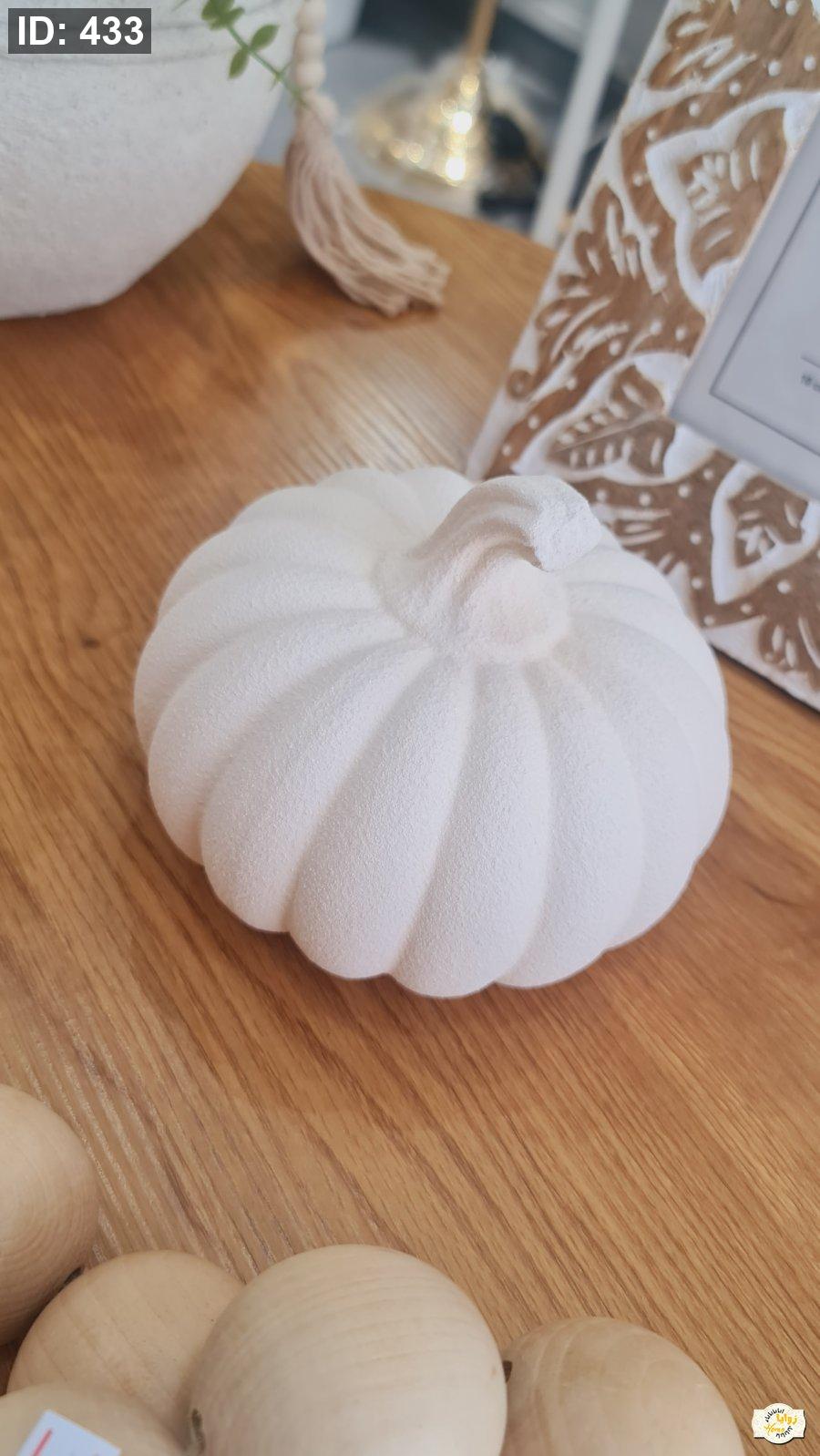 تحفة شكل يقطينة سيراميك منمش لون ابيض وبني حجم صغير