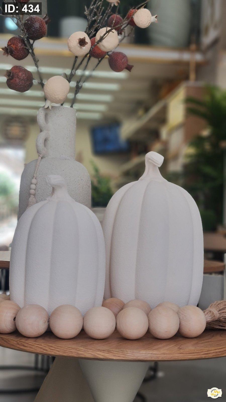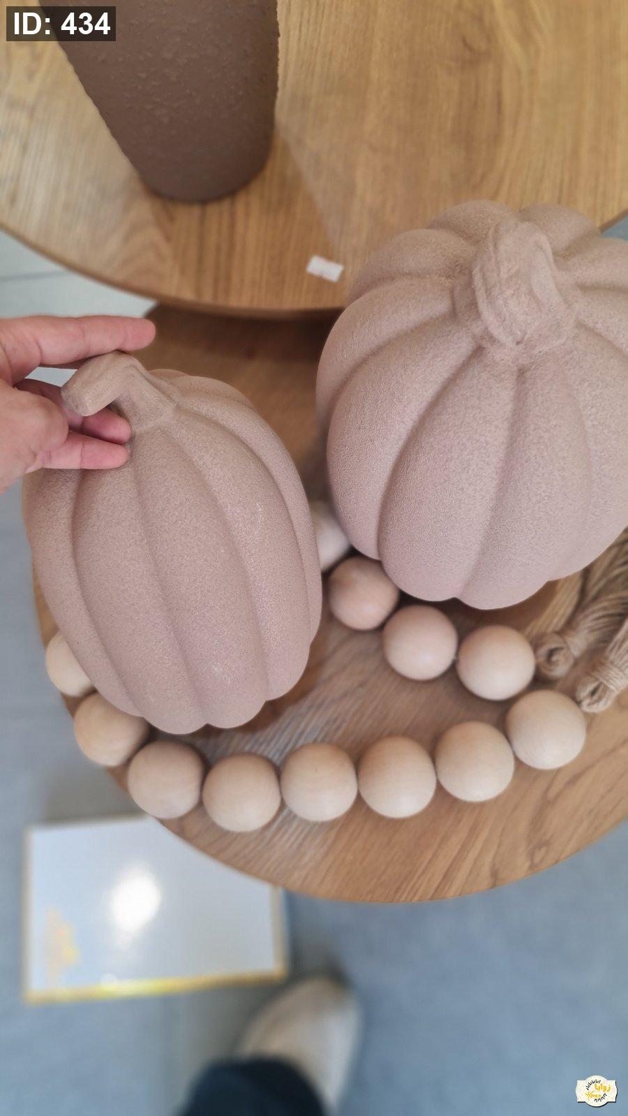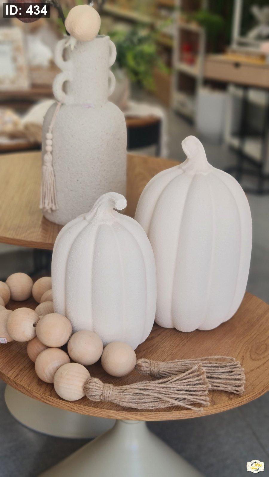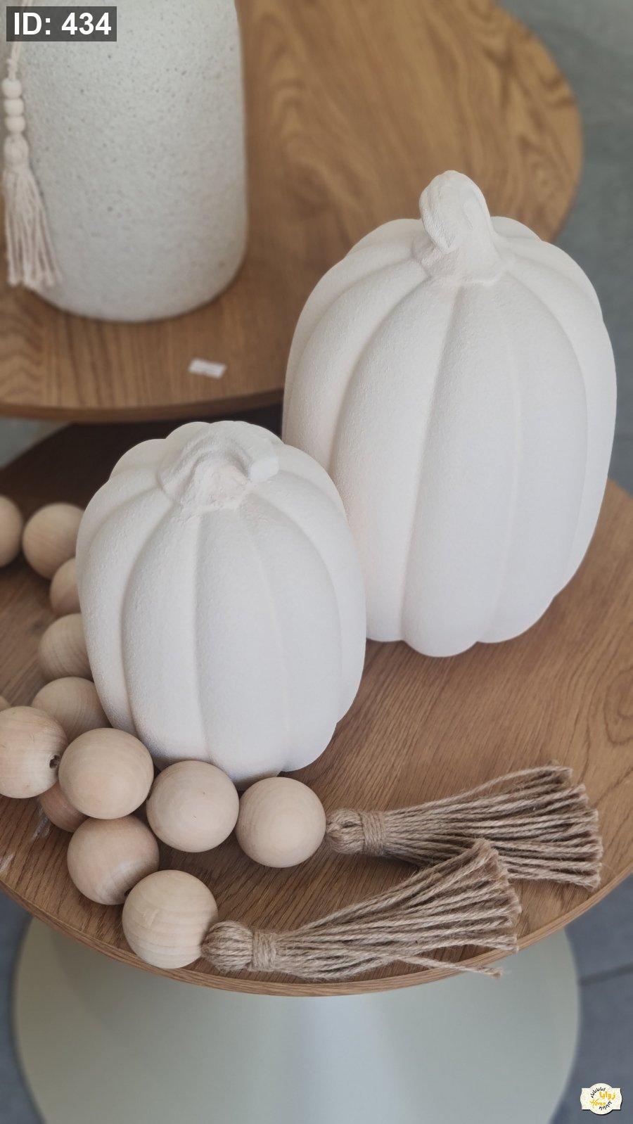 تحفة شكل قرع سيراميك منمش لون ابيض وبني حجم كبير