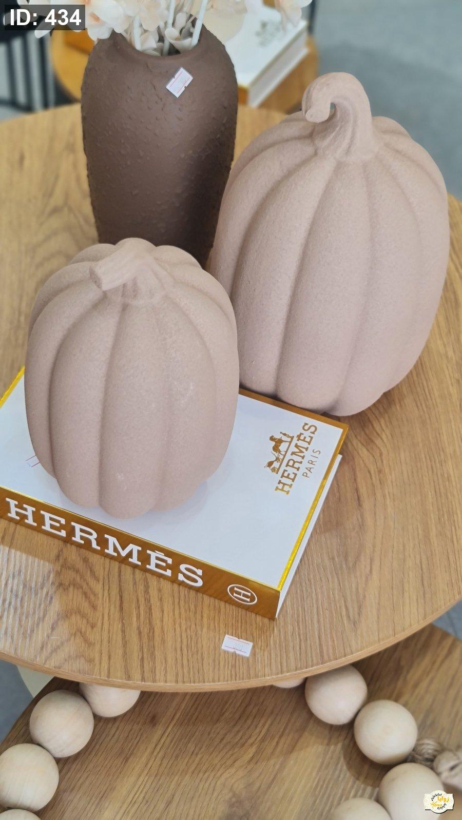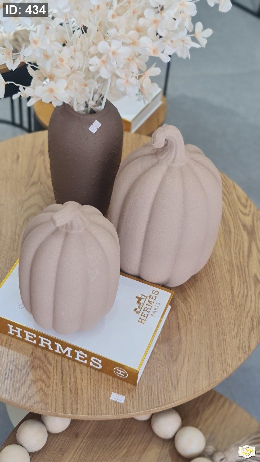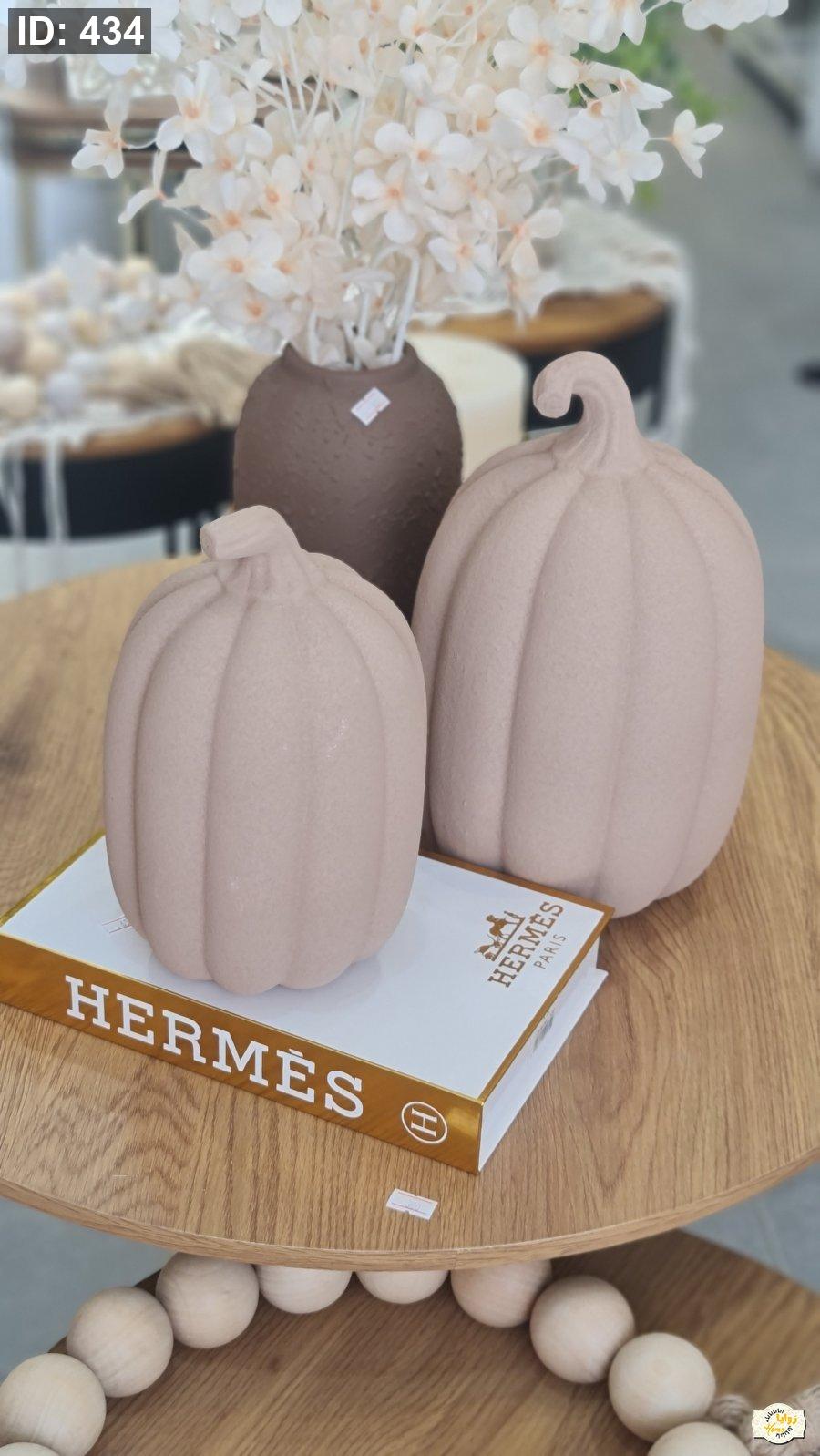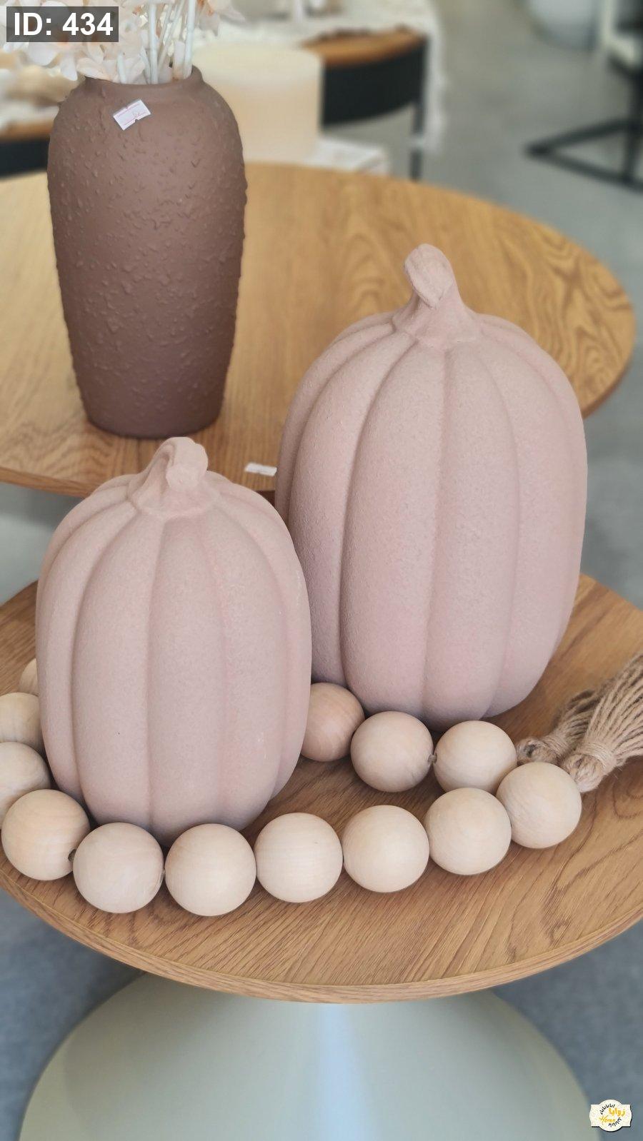 تحفة شكل قرع سيراميك منمش لون ابيض وبني حجم كبير