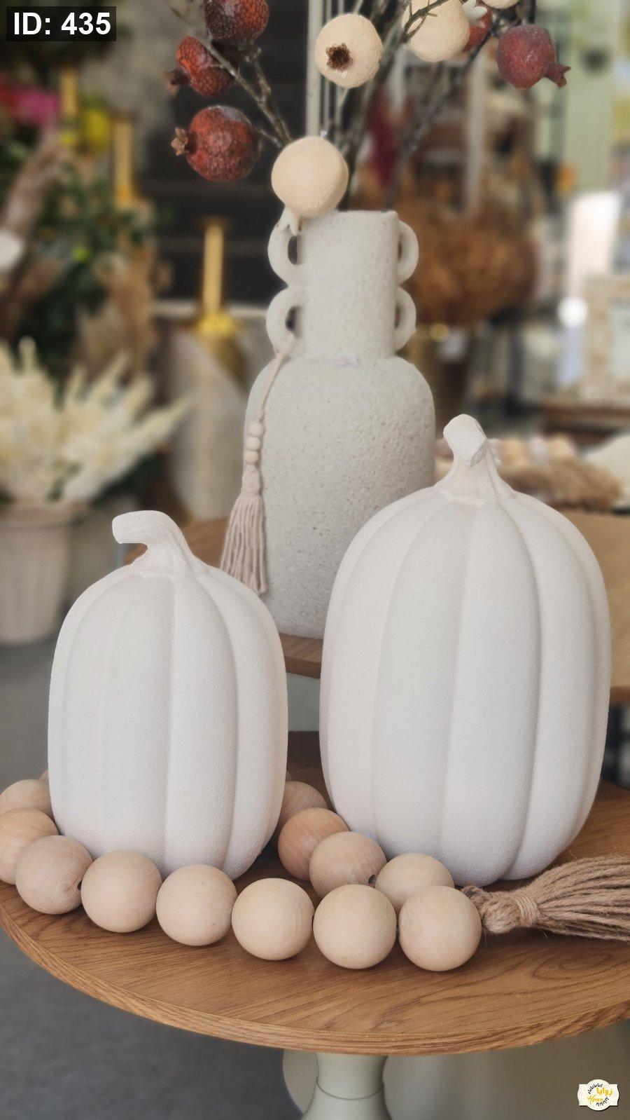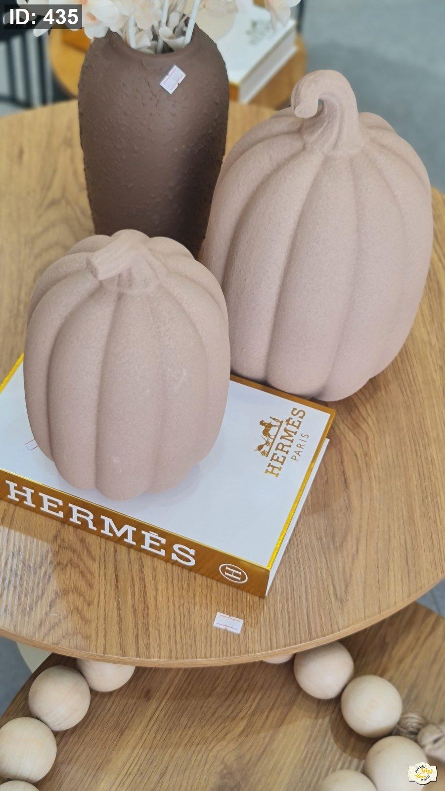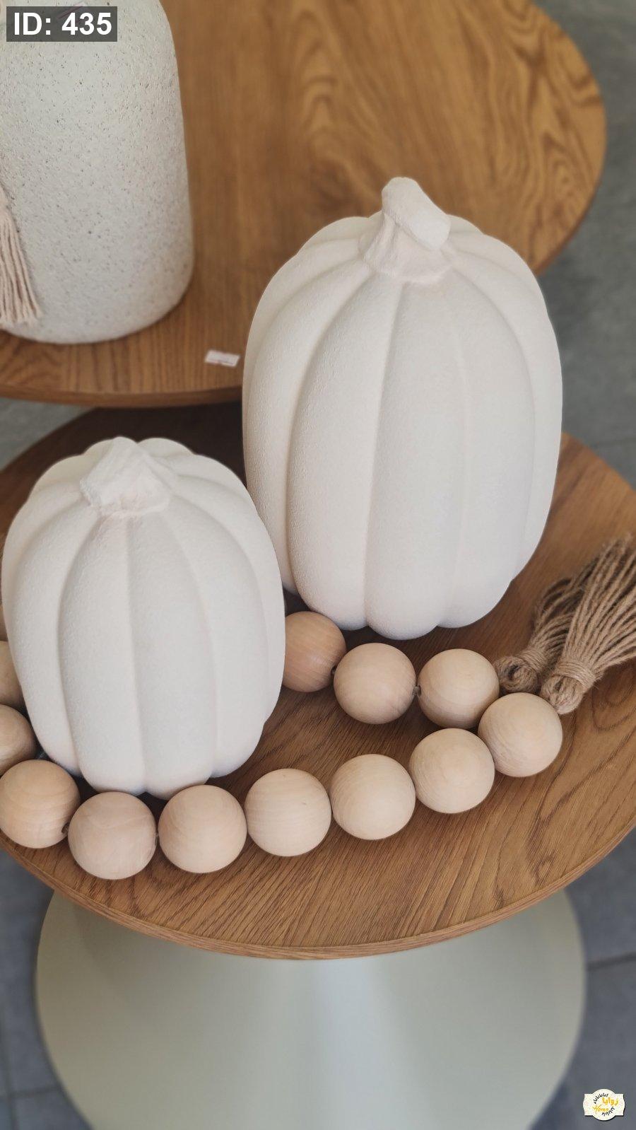 تحفة شكل قرع سيراميك منمش لون ابيض وبني حجم صغير