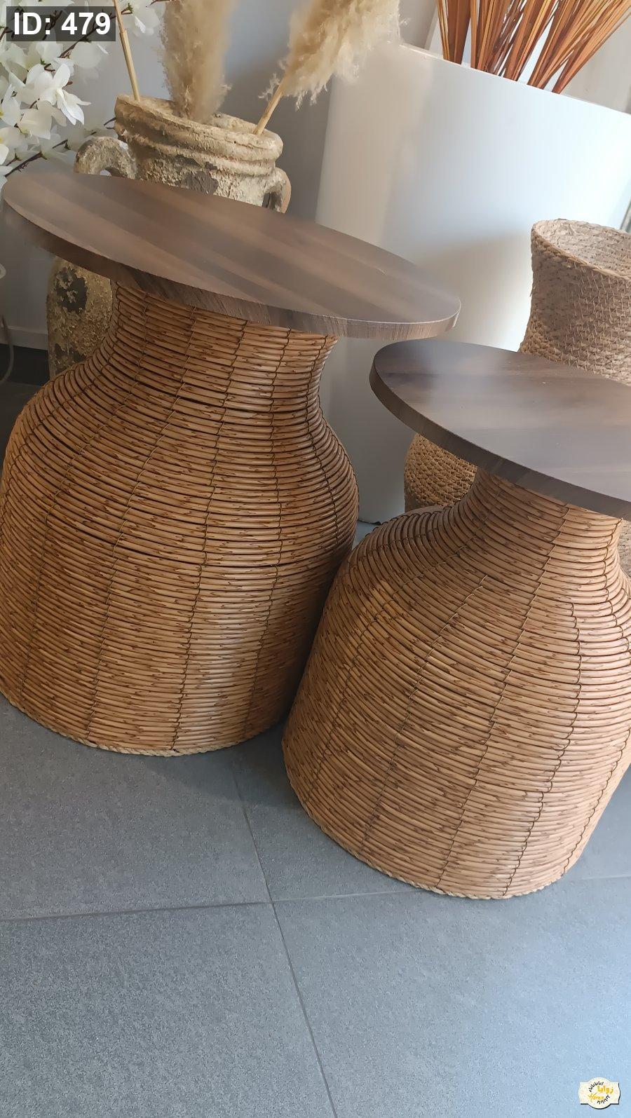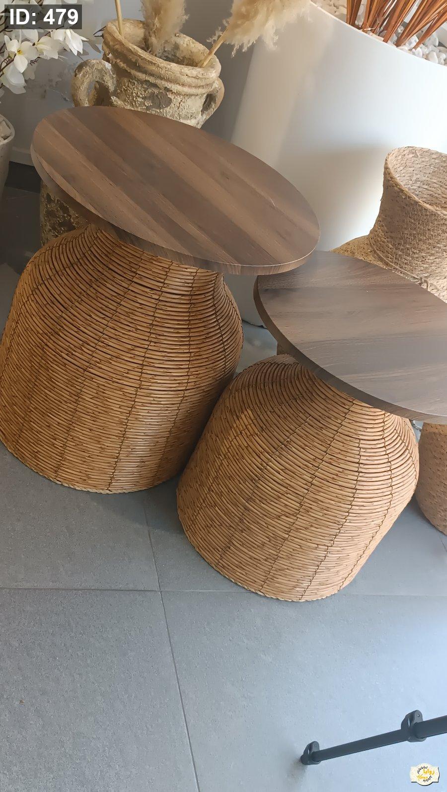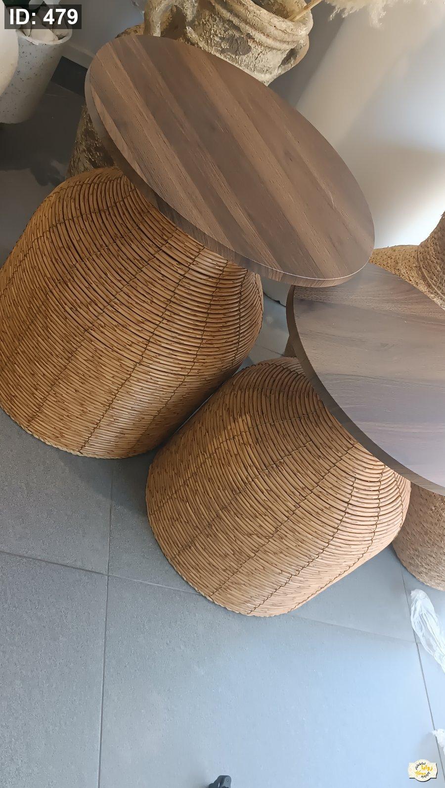 طقم سكملات قش قطعتين دائرة خشبي