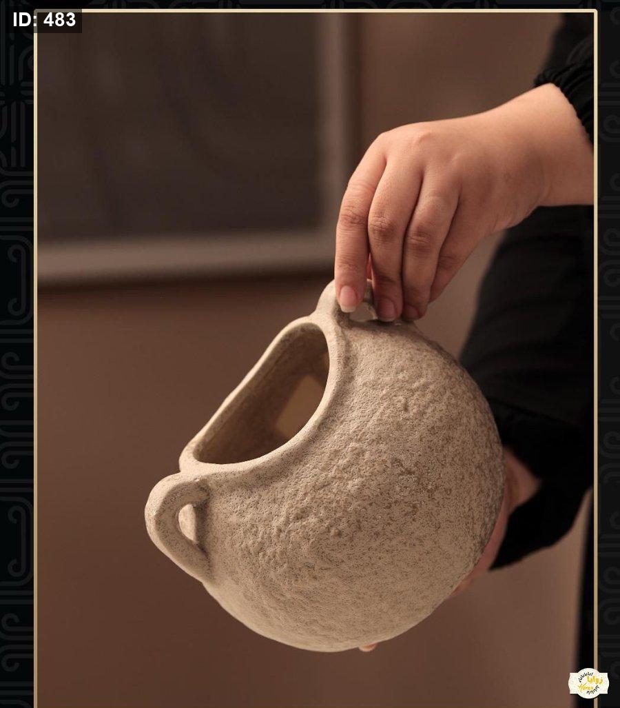 فازة جرة لون طحيني مع ذانتين