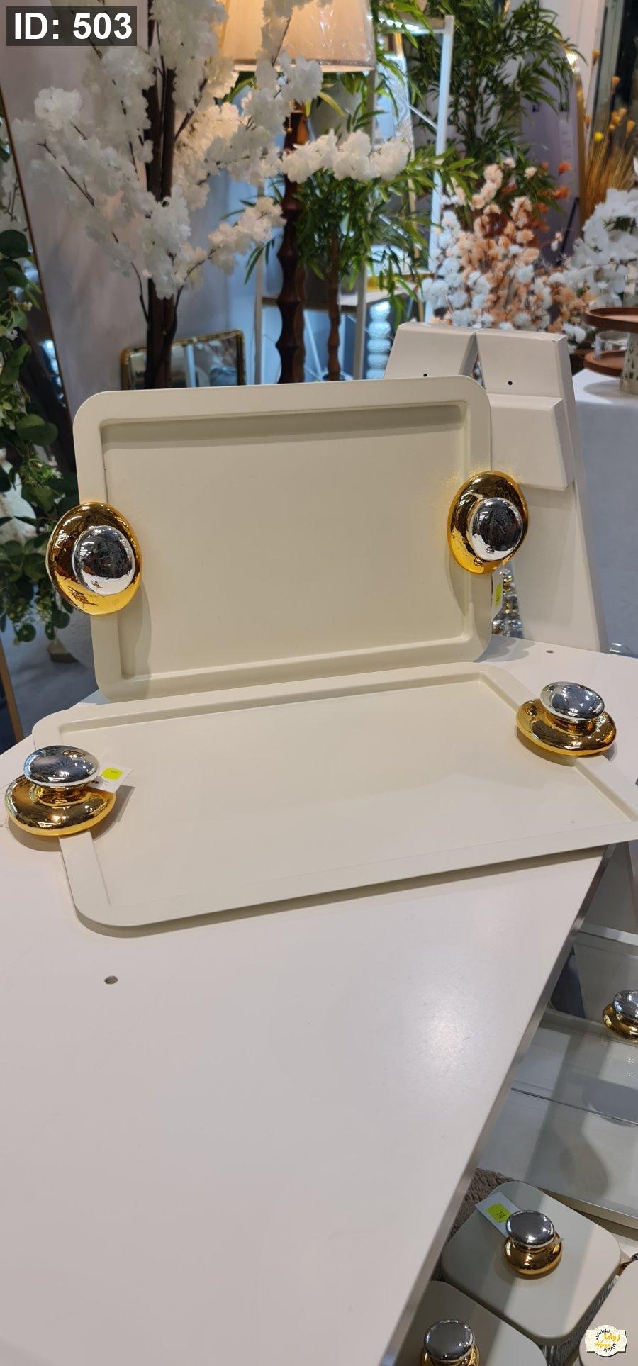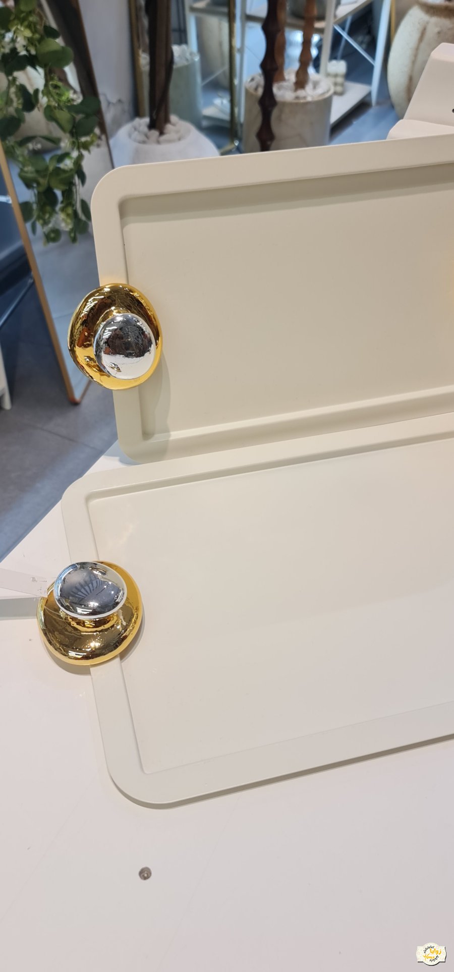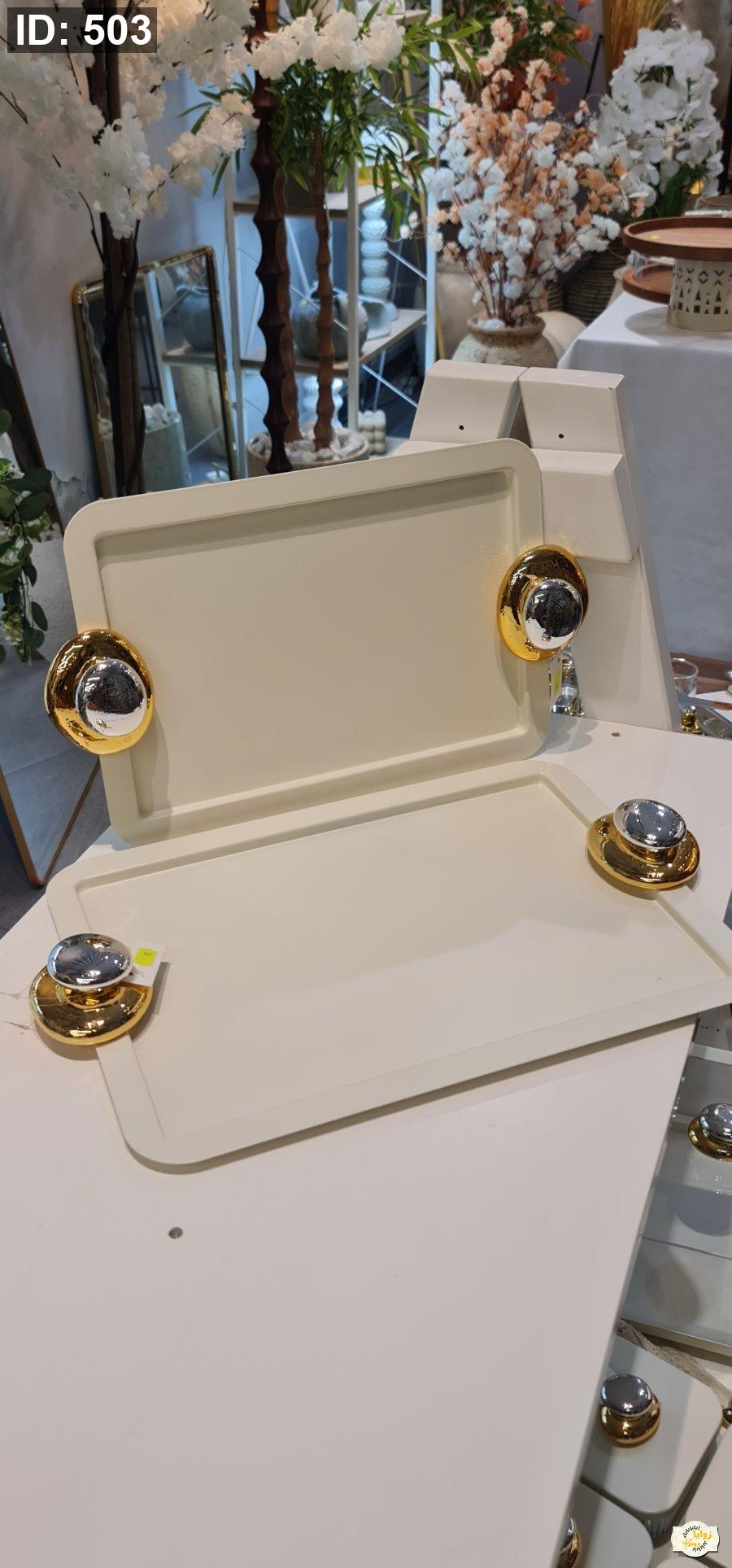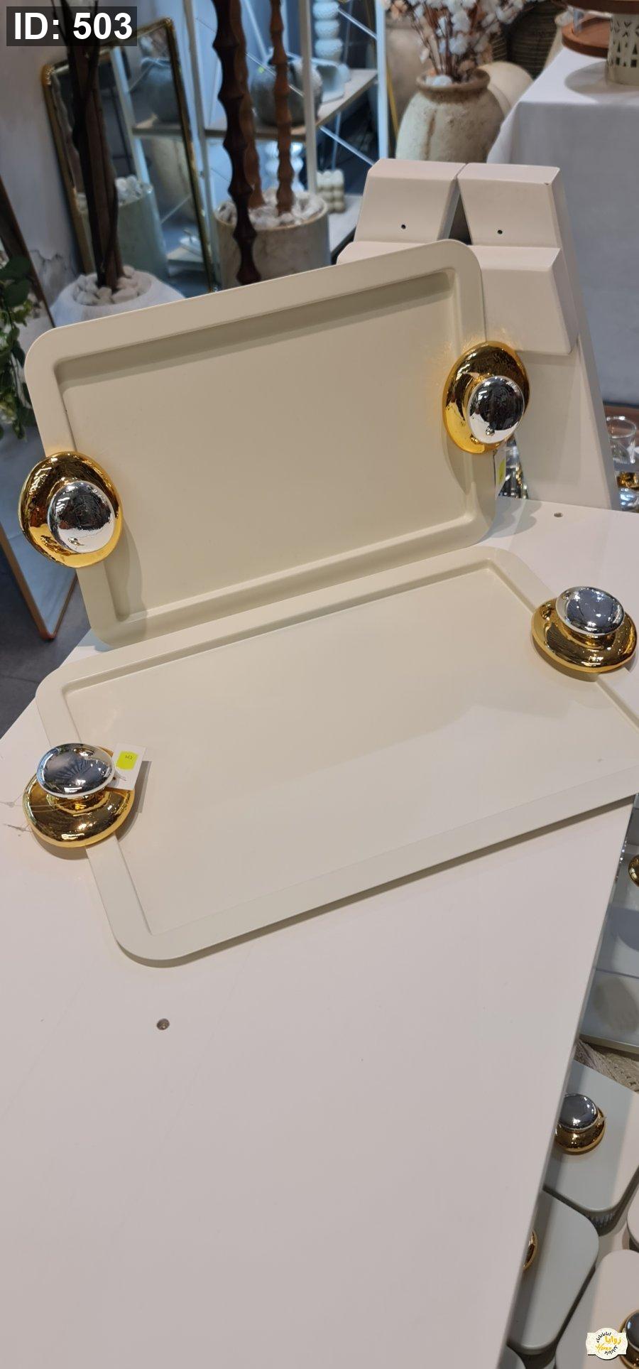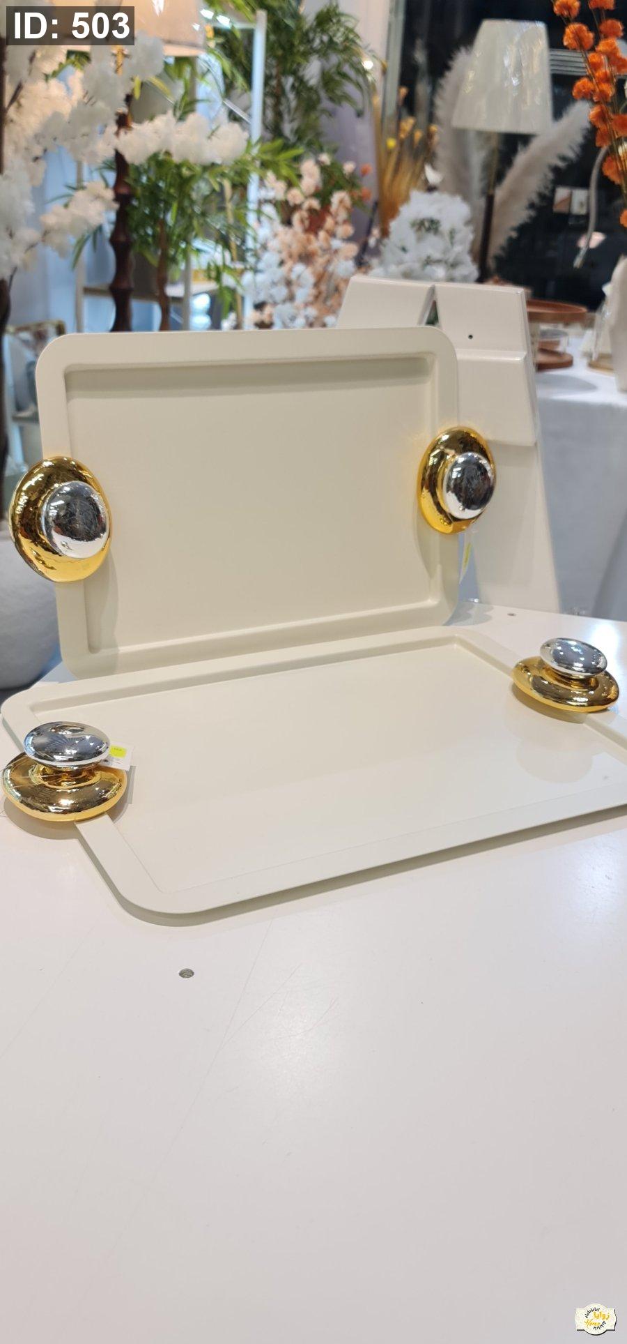 صينية معدن لون بيج يد فضي مع  ذهبي حجم صغير