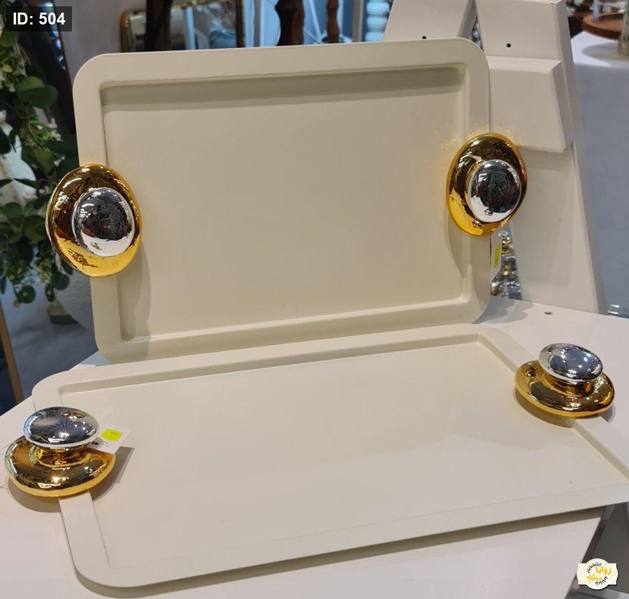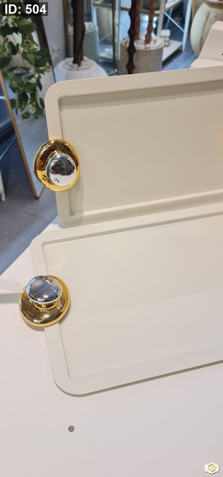 صينية معدن لون بيج يد فضي مع ذهبي حجم كبير