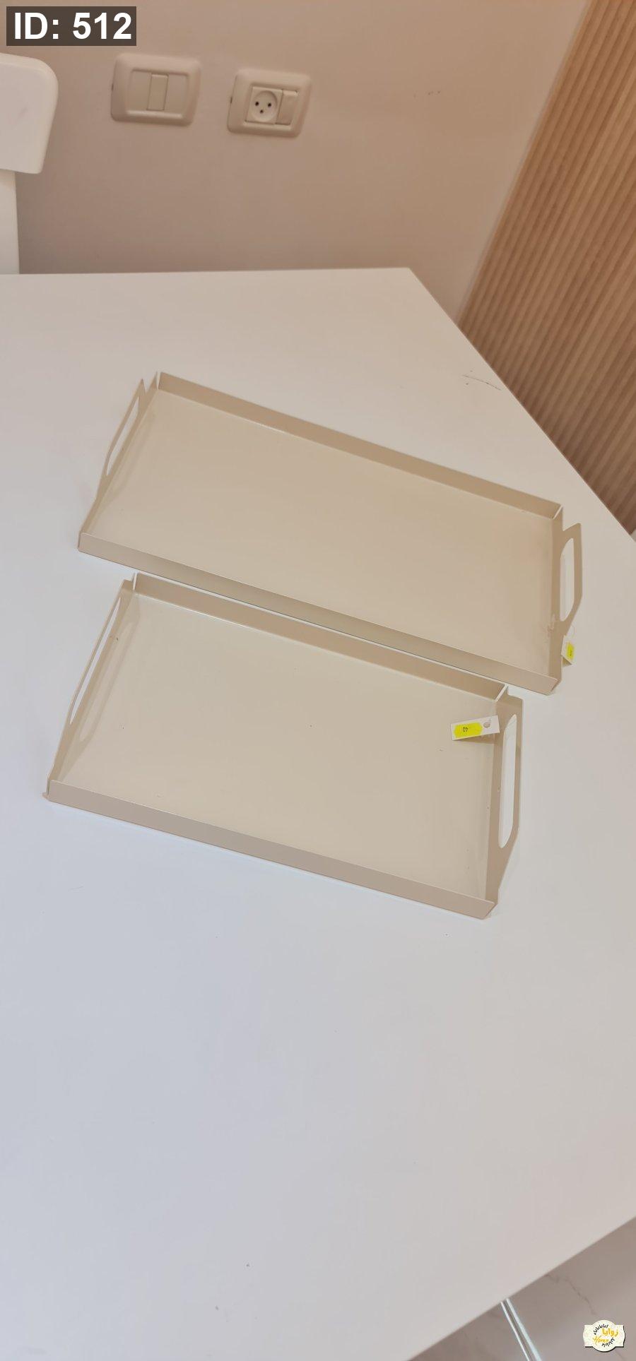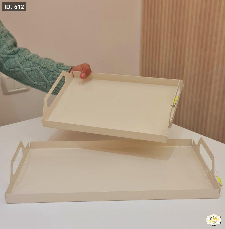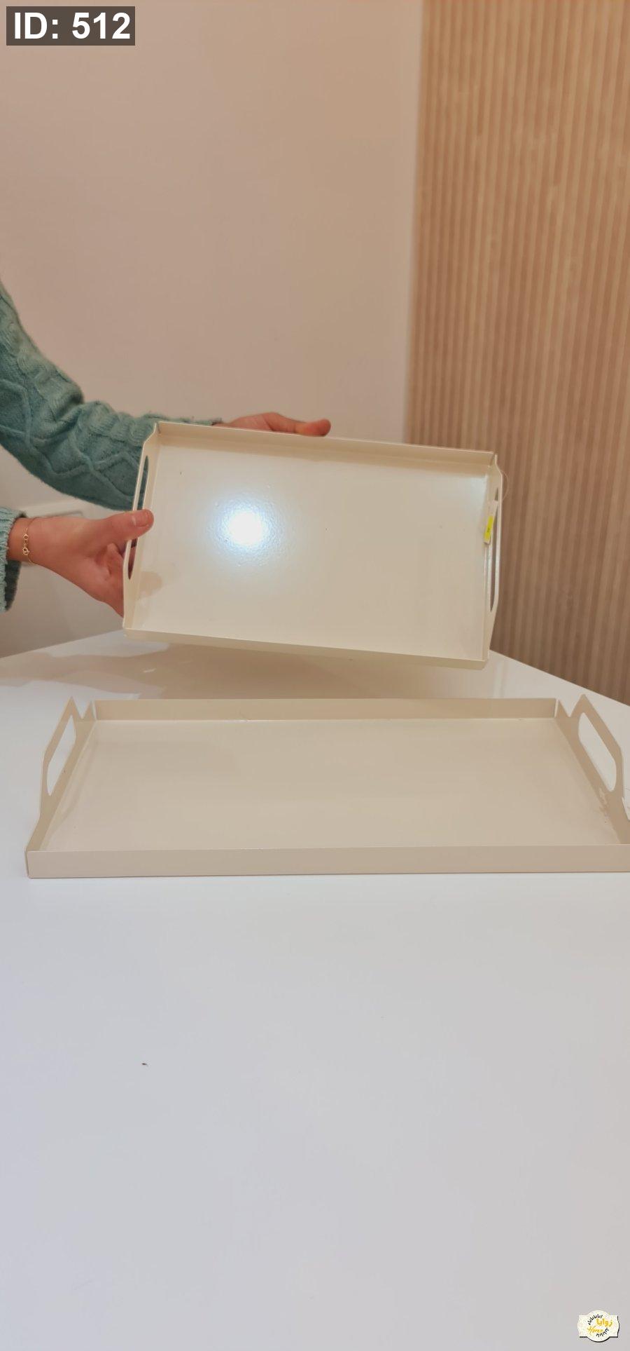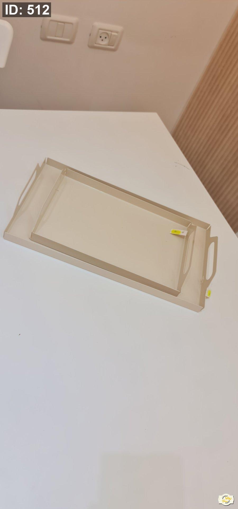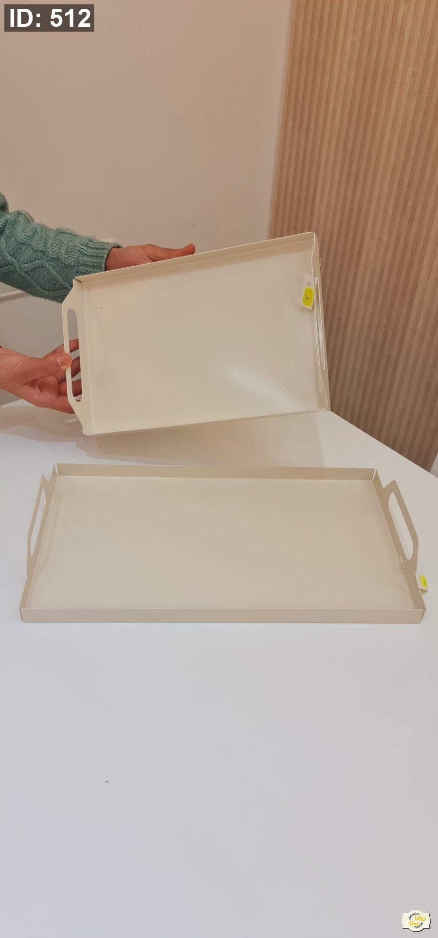 صينية معدن سادة مع ايدين لون بيج حجم كبير