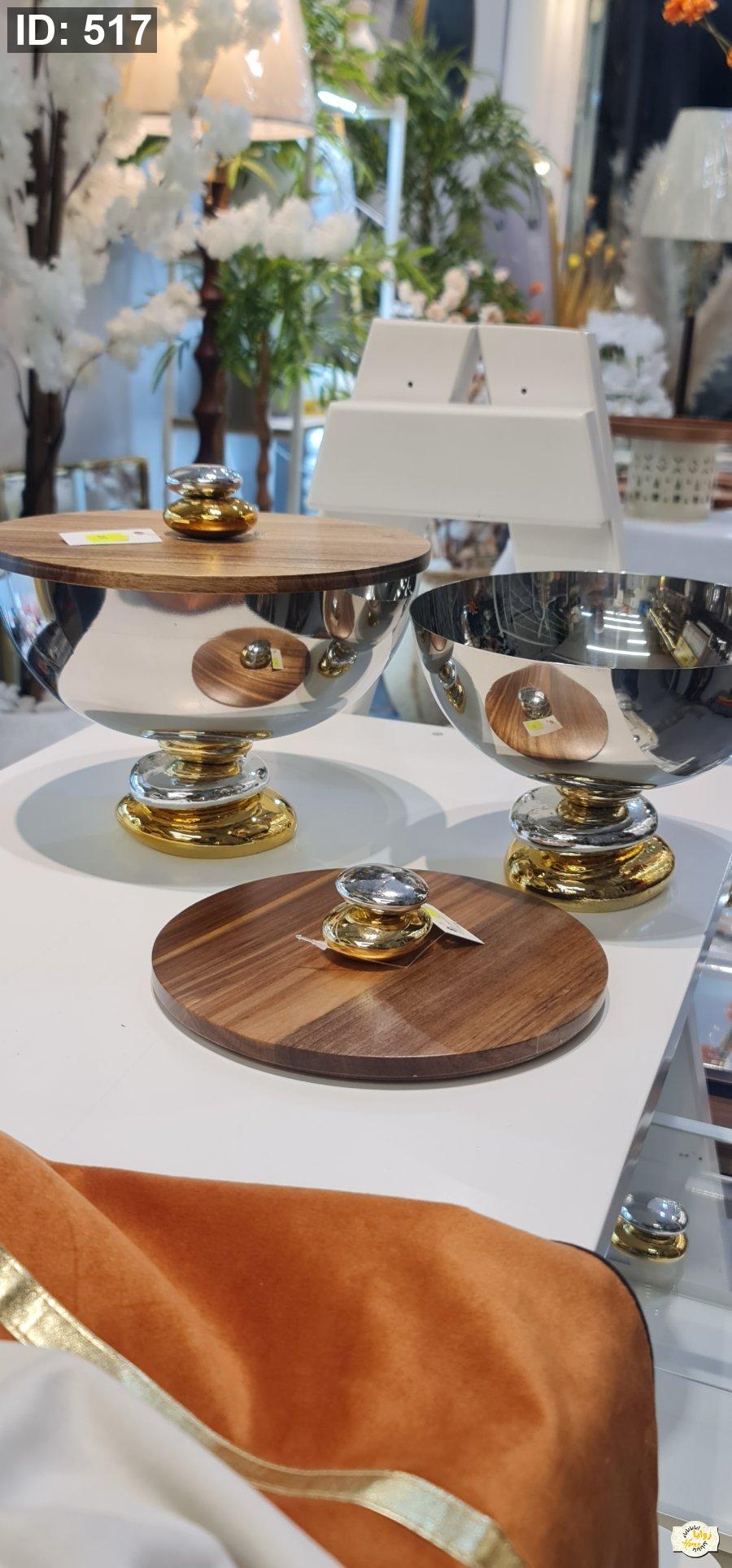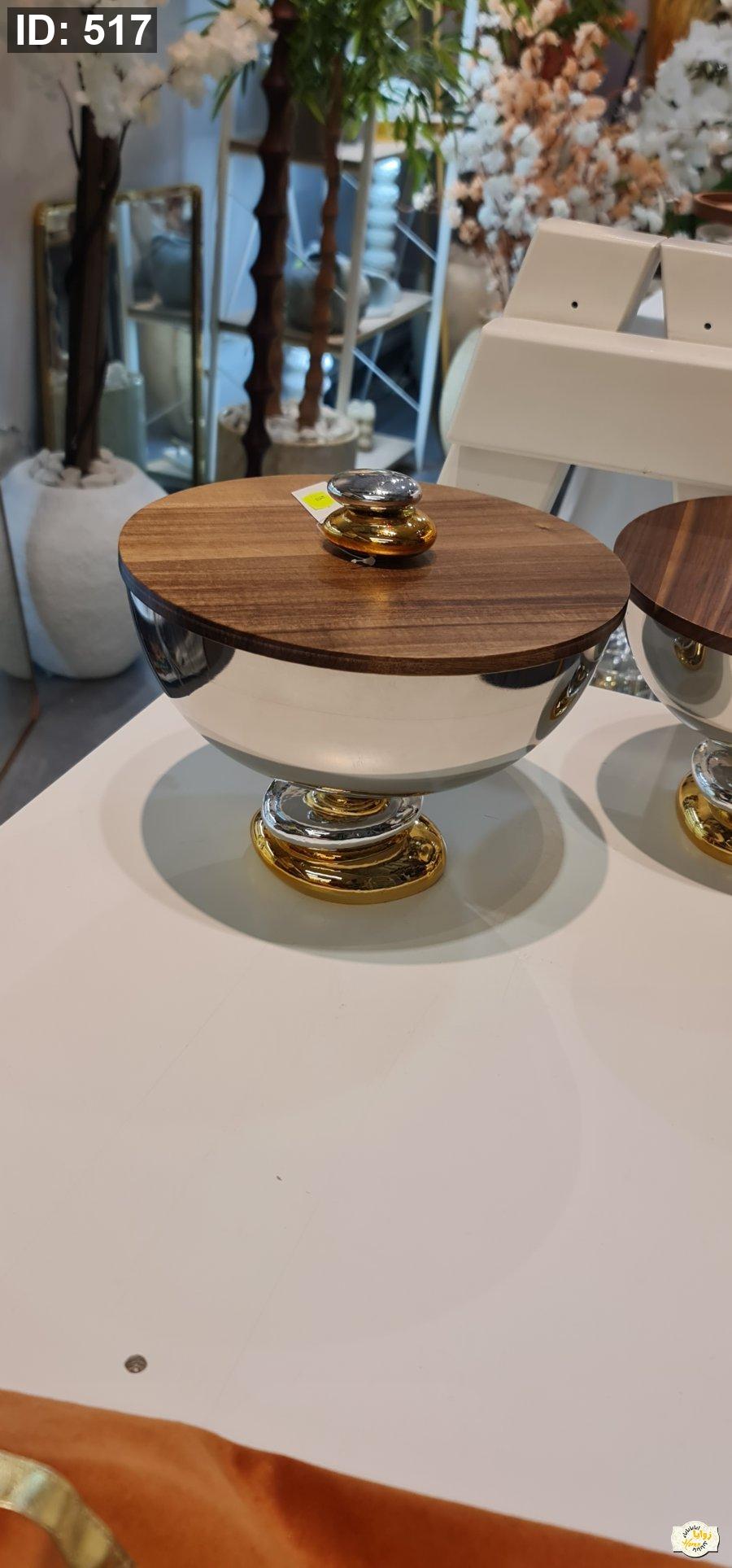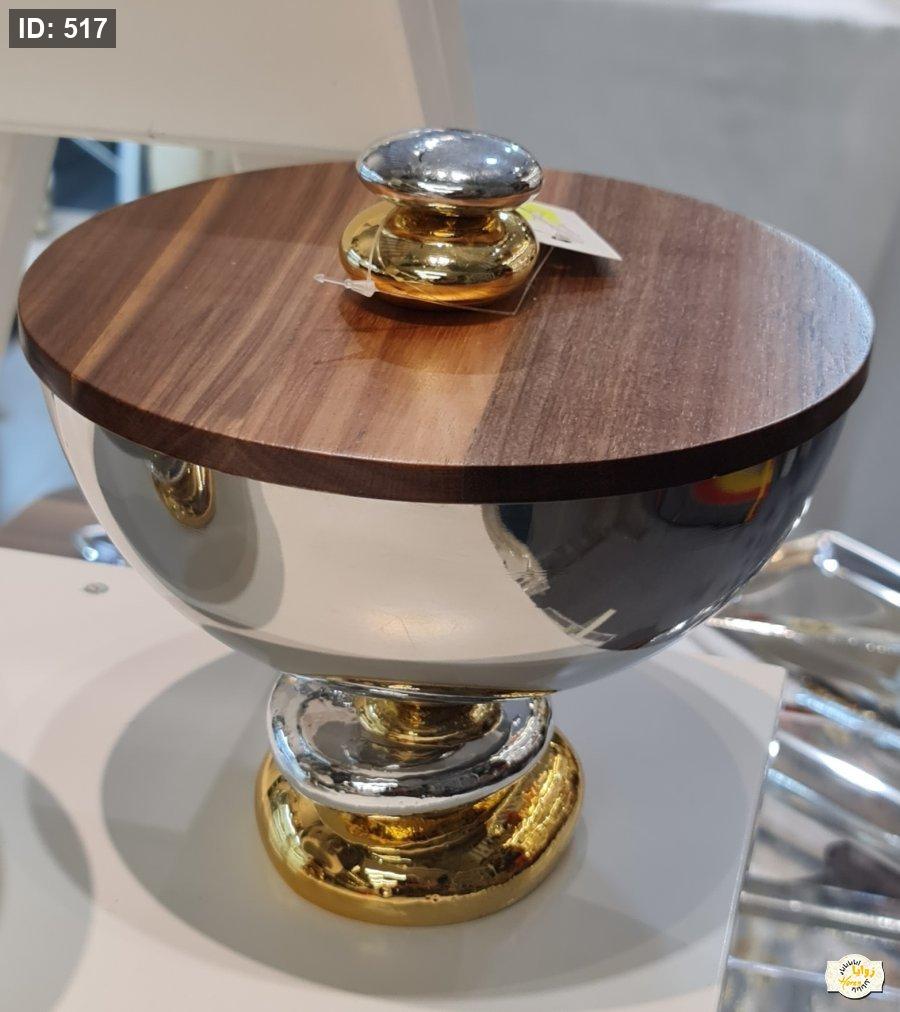 مضيفة معدني فضي مع قاعدة مع غطاء خشبي حجم صغير