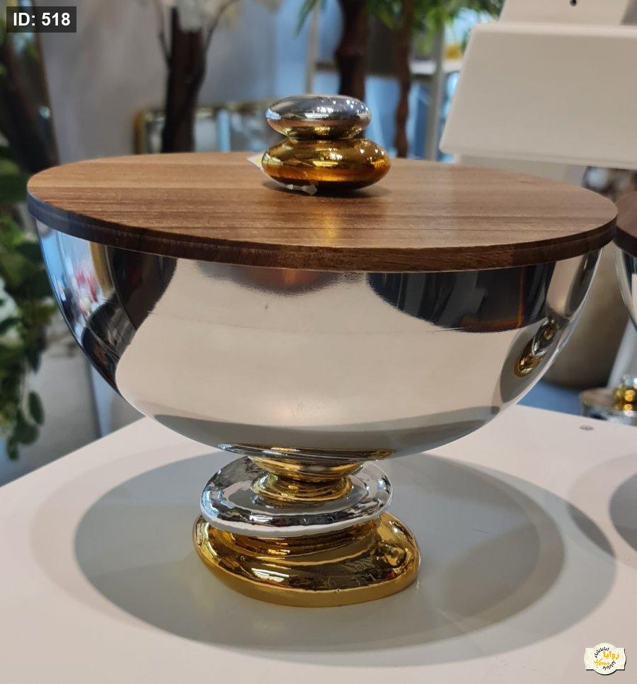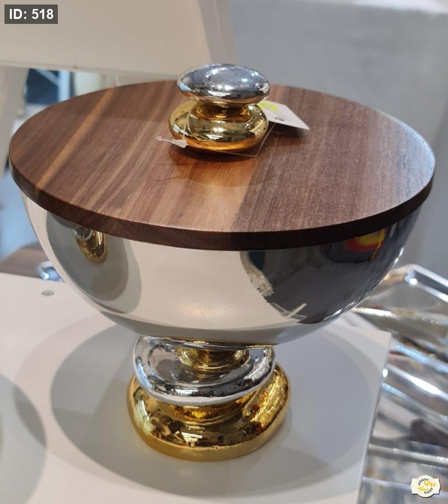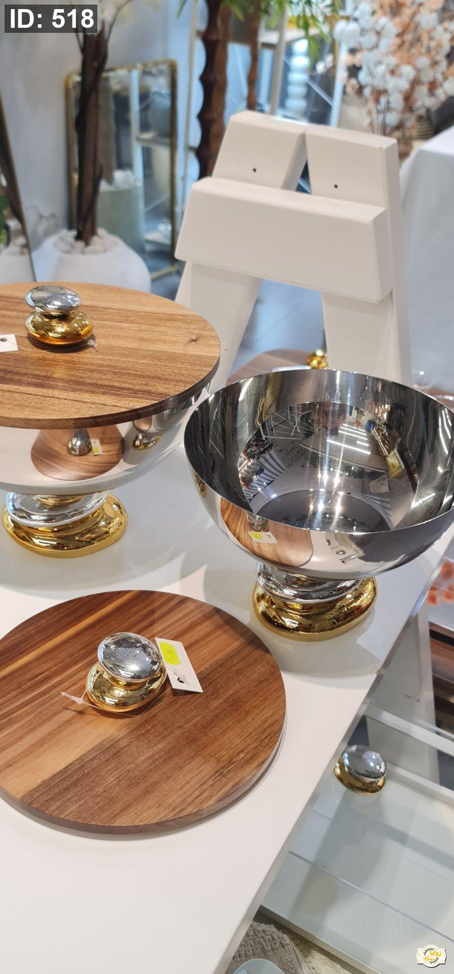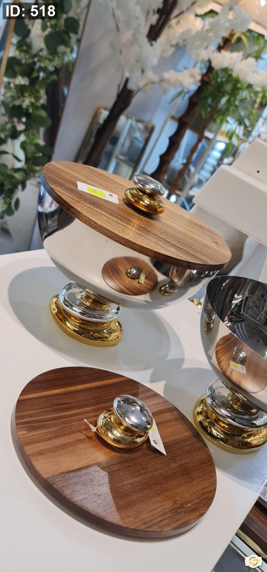 مضيفة معدني فضي مع قاعدة مع غطاء خشبي حجم كبير