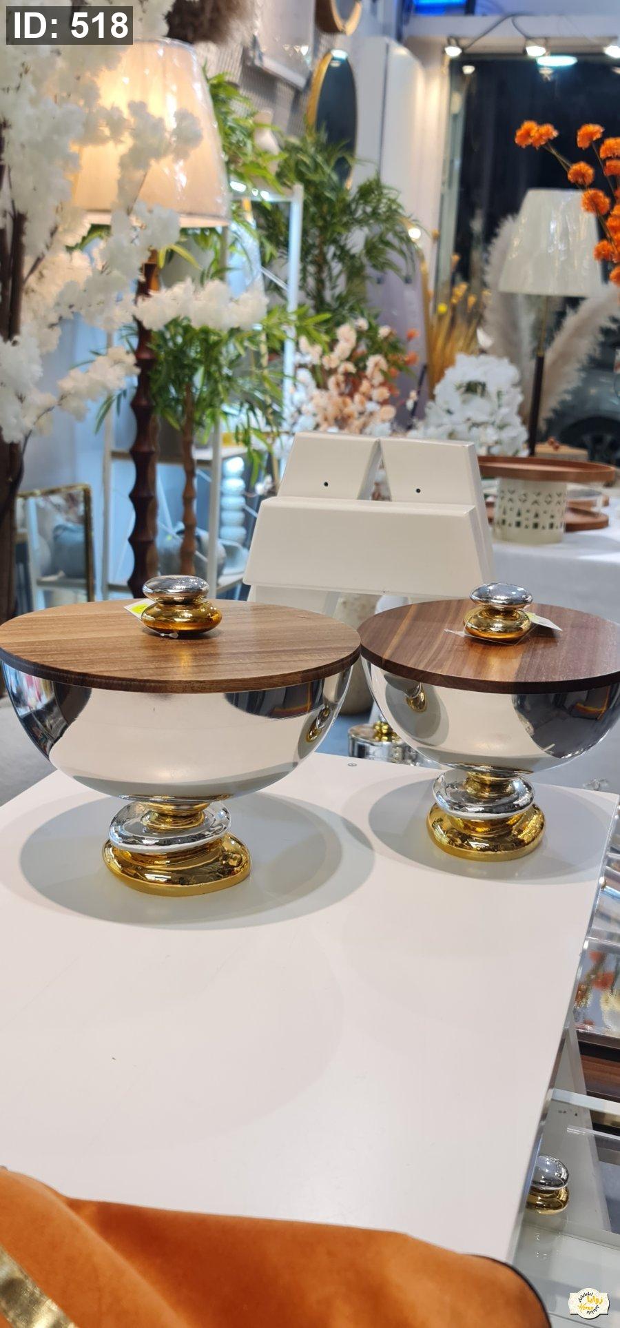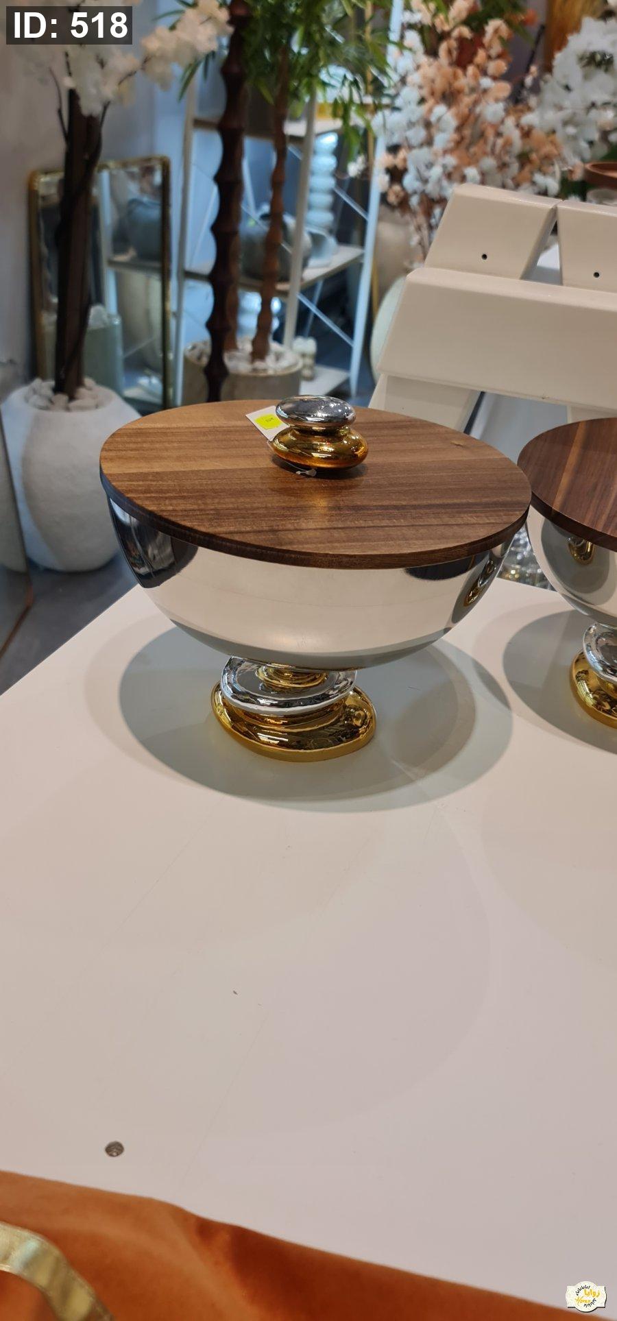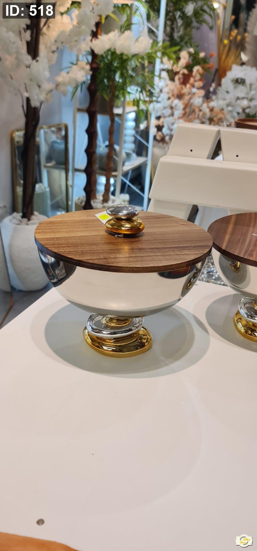 مضيفة معدني فضي مع قاعدة مع غطاء خشبي حجم كبير