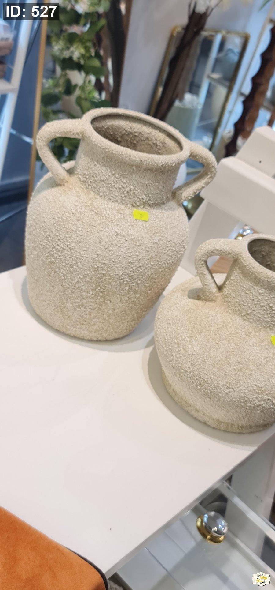 فازه حجري مخشن مع ذانتين كبار شكل جره حجم صغير