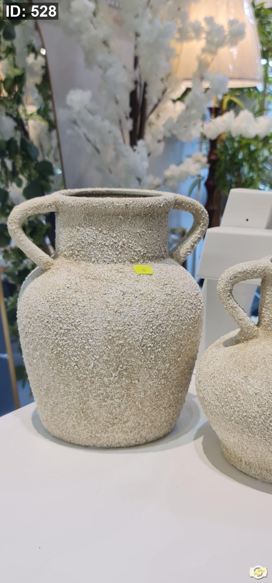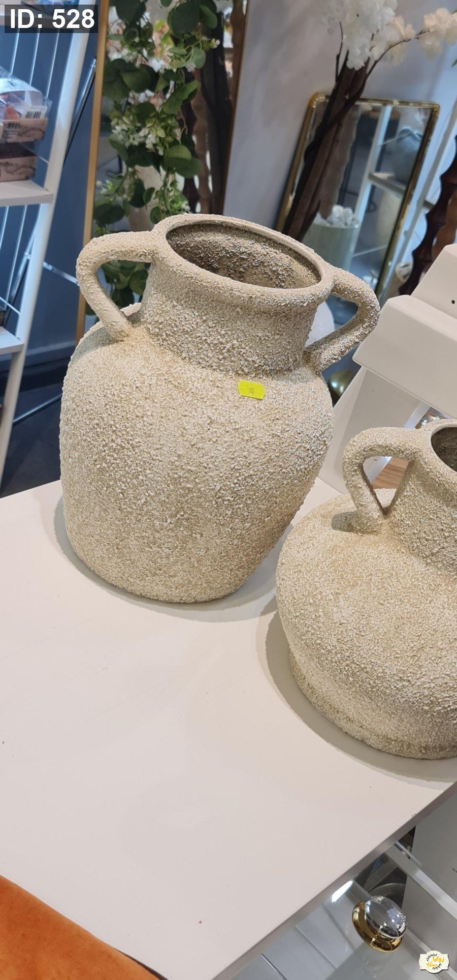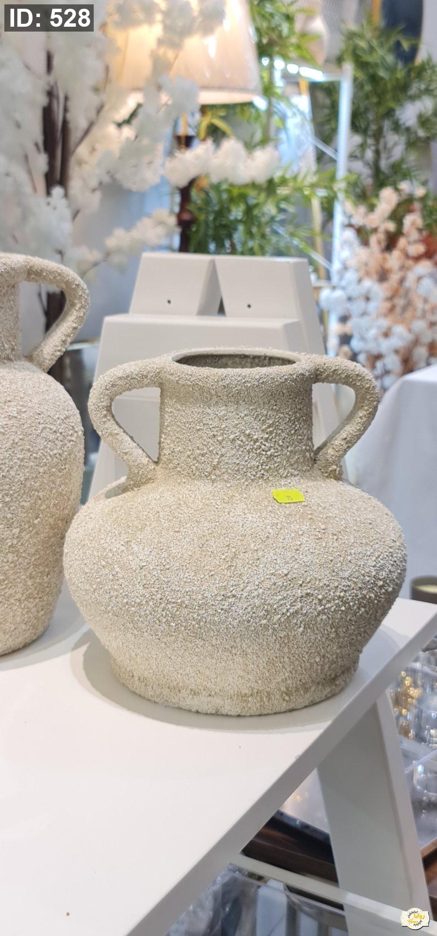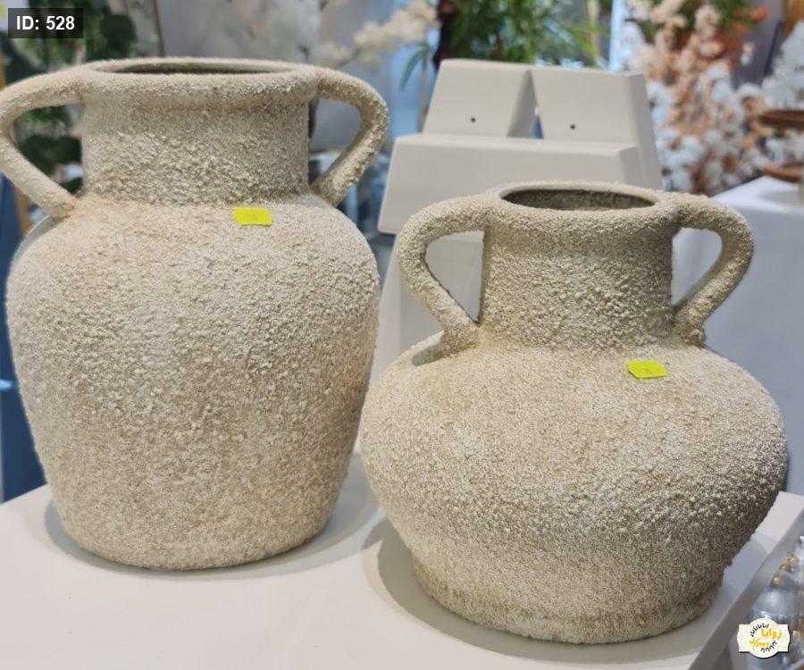 فازه حجري مخشن مع ذانتين كبار شكل جره حجم كبير
