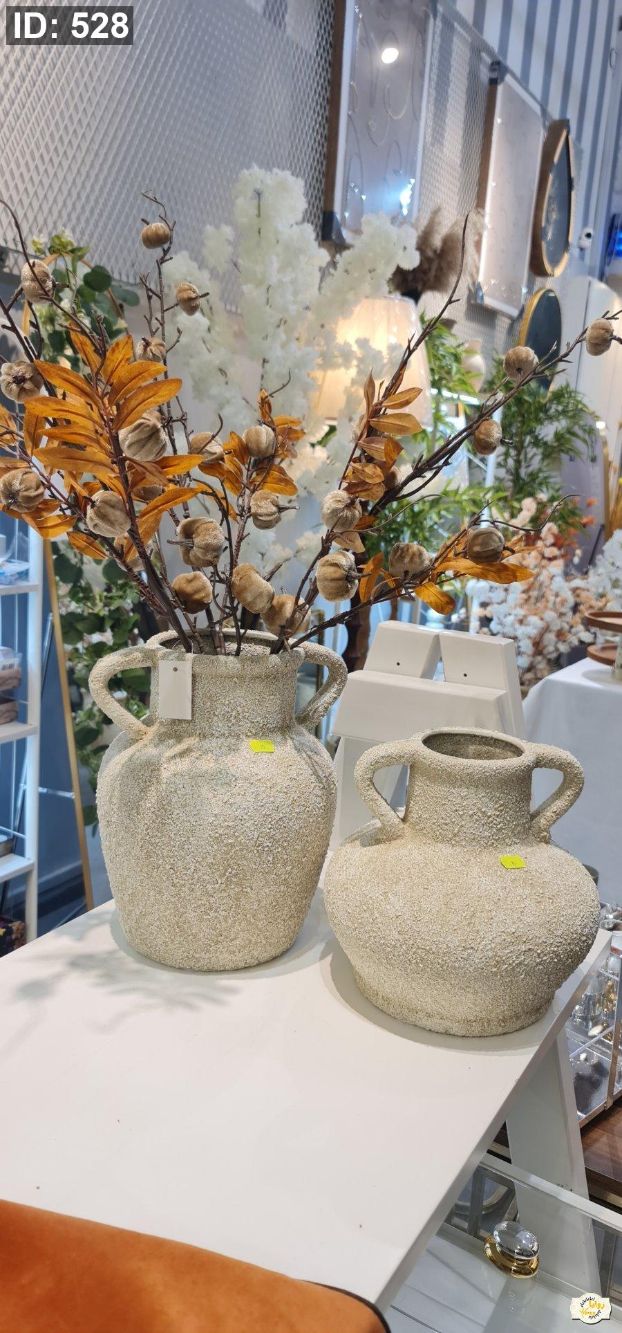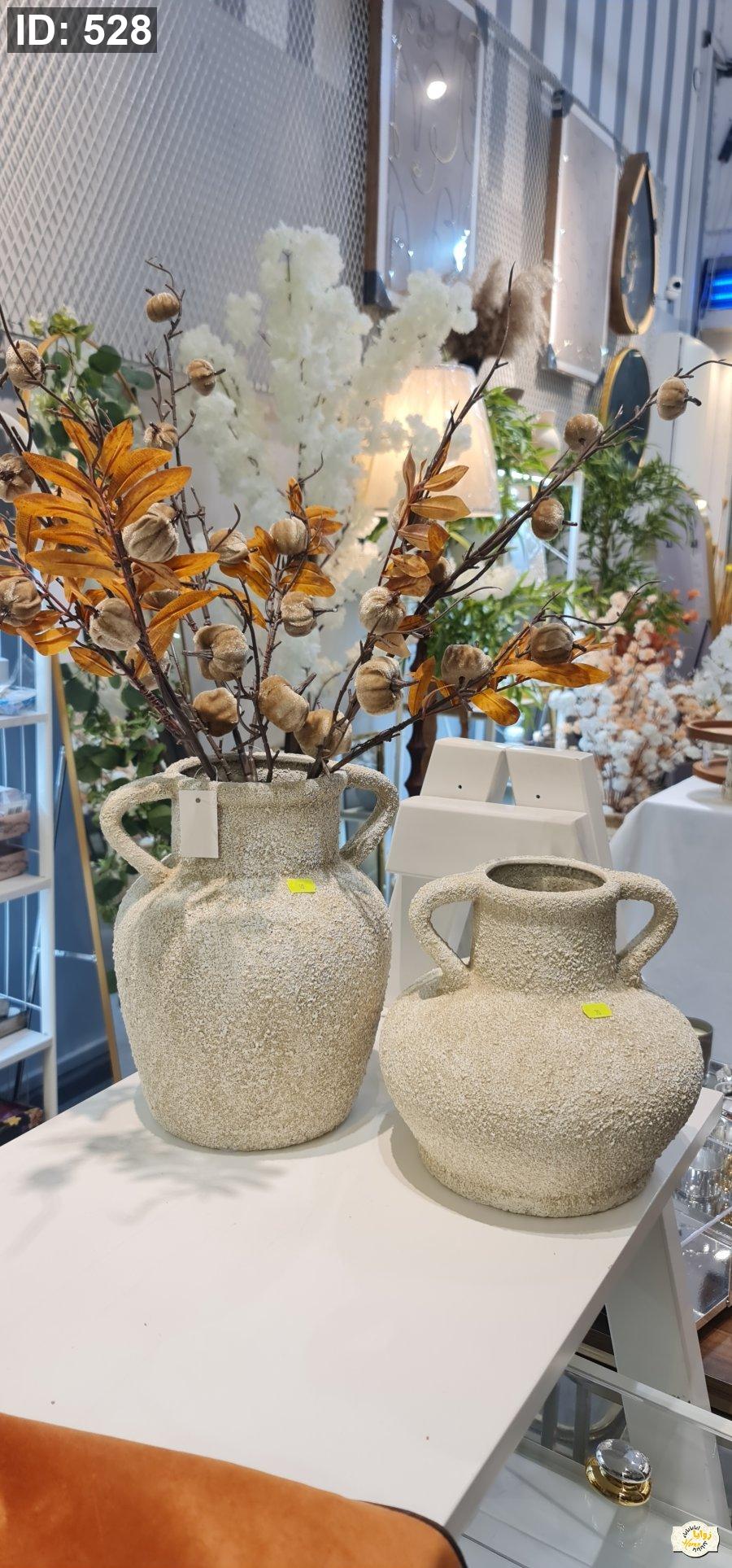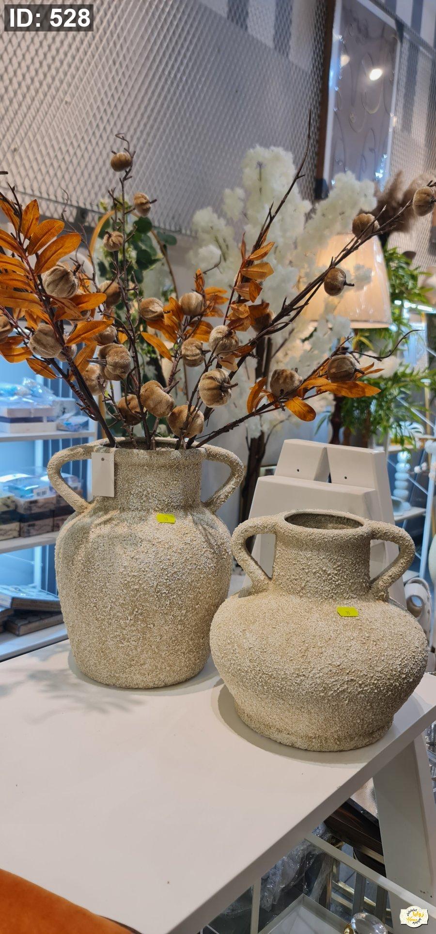 فازه حجري مخشن مع ذانتين كبار شكل جره حجم كبير